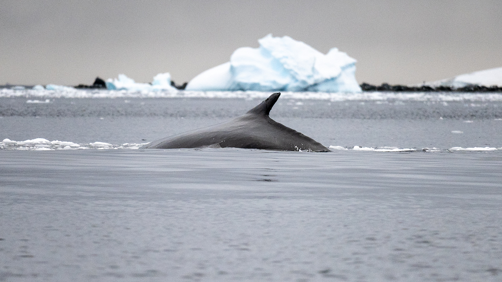 continent, it’s tempting to imagine that, in theory, one could trek all the way to the South Pole from here! For the cruising, we once again had a marvelous experience with more humpback whales, as well as the Antarctic Minke whale. The smallest and most streamlined of the rorqual whales, they are built for speed, slicing through the icy waters with remarkable agility.