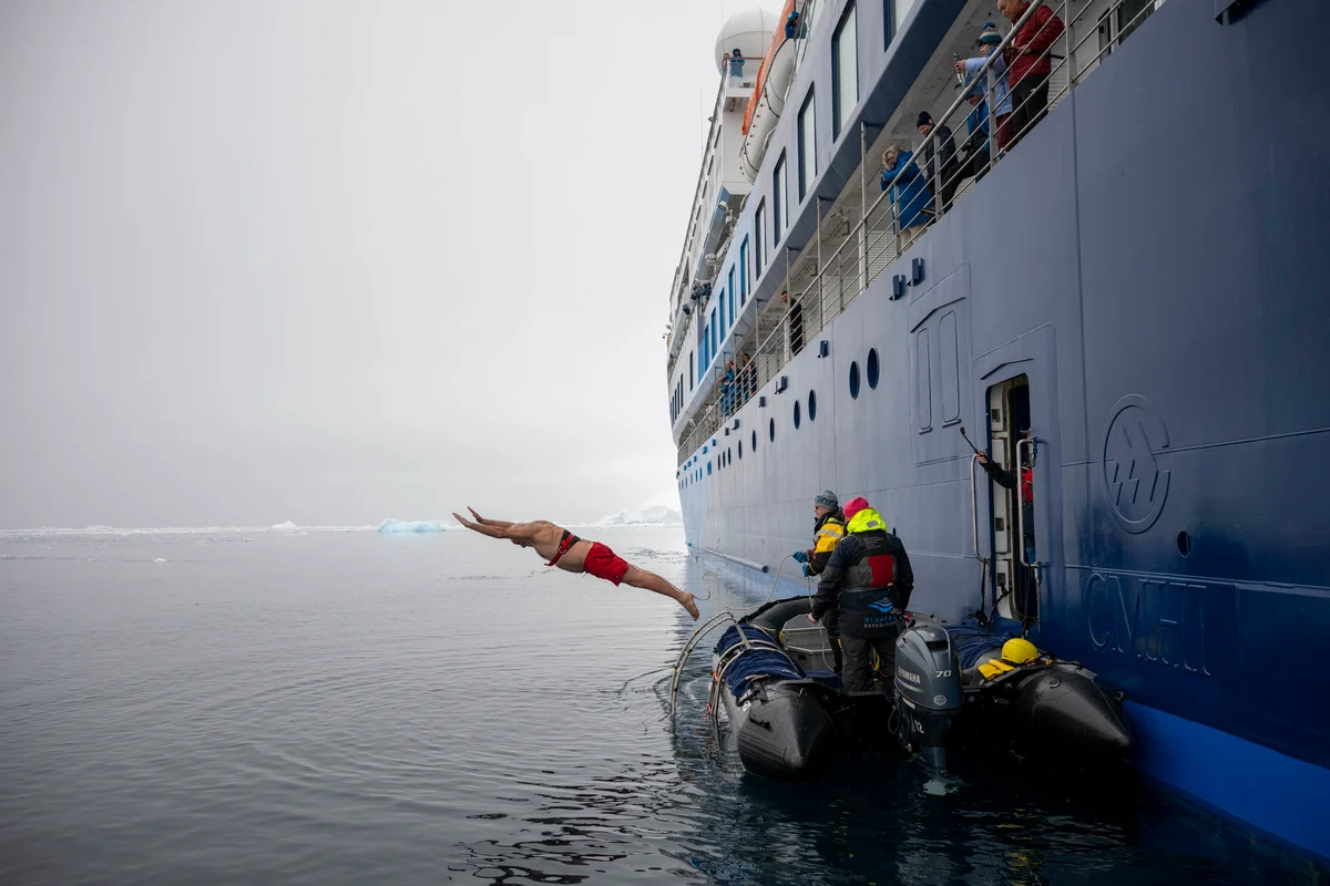 Immediately succeeding the cruising, guests were treated to a ‘polar plunge’ which involved jumping into the icy water and experiencing the clasp of the deep. After a large number of guests had braved the watery cold, it was time for a hearty lunch on board, and then onwards, to a new adventure.