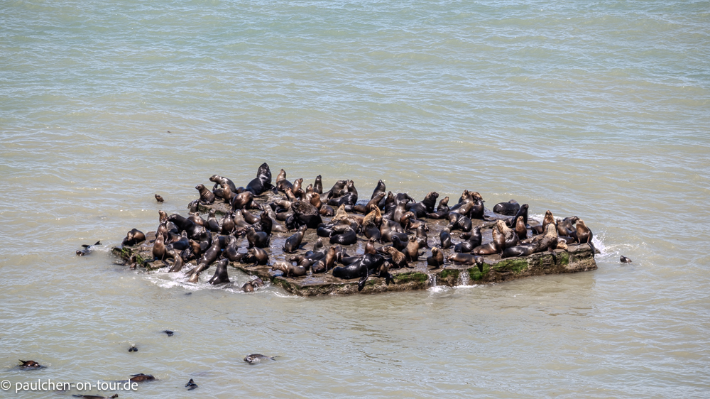 Da viele Reisende eine ähnliche Streckenplanung haben, standen wir am zweiten Tag mit zwei weiteren deutschen Reisefahrzeugen am Strand. Der Wind hatte kräftig zugelegt und wir beschlossen weiter zu fahren und bei einer Seelöwenkolonie einen Stopp einzulegen. Die Sonne schien und trotz Wind genossen wir den Tag mit der Beobachtung der Tiere.