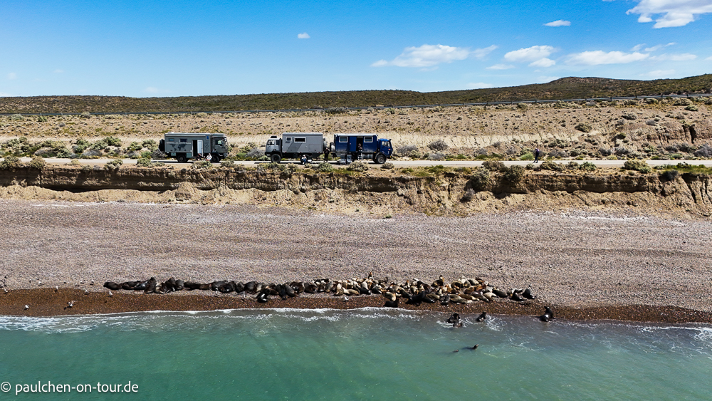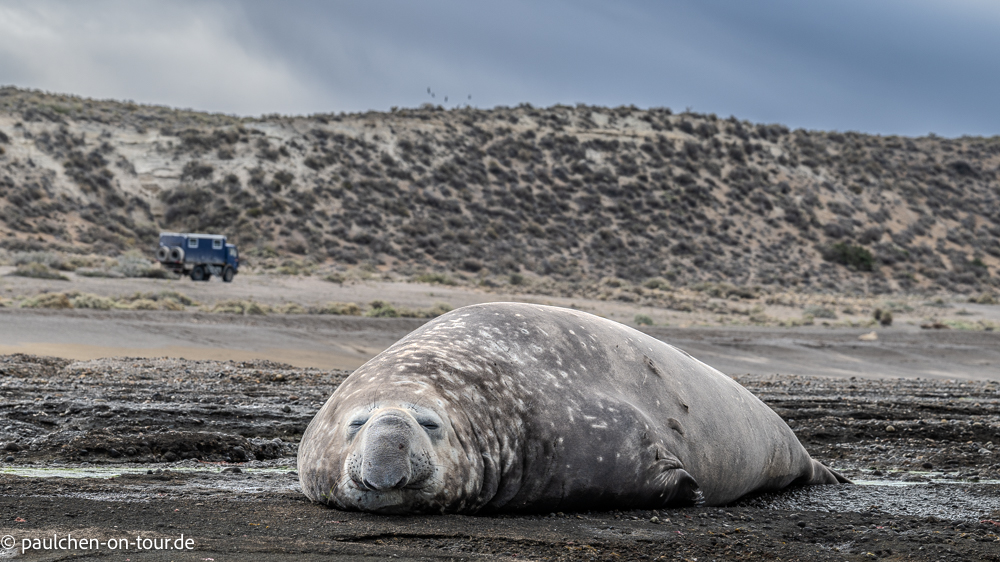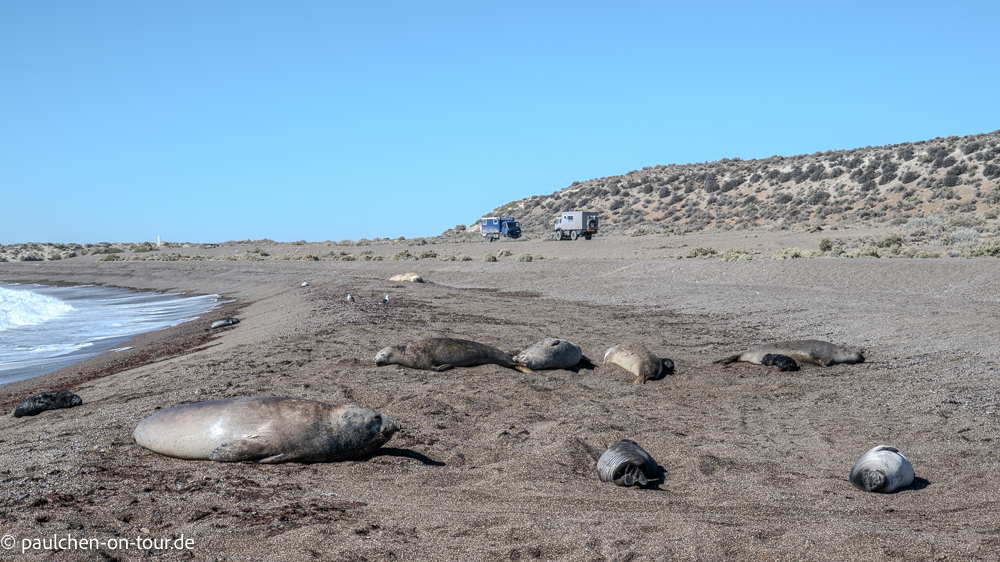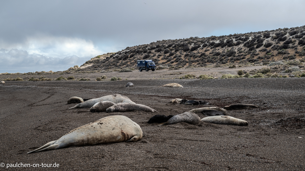 Über die Ruta Provincial 1 (Piste) erreichten wir schon bald unser nächstes Ziel, einen herrlichen Strand an der Isla Escondida wo wir eine See-Elefantenkolonie aus nächster Nähe beobachten konnten.