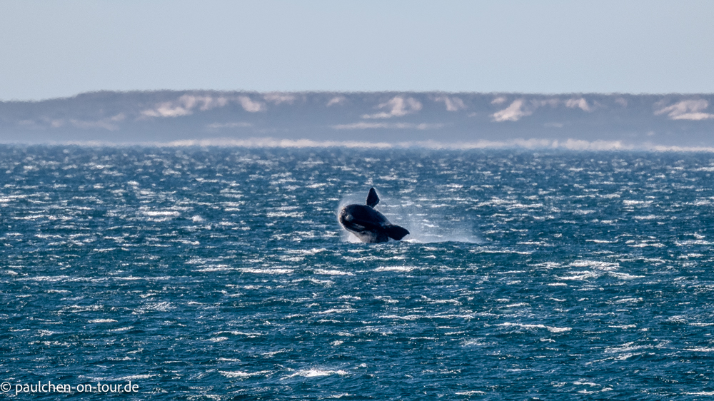 Mit dem beginnenden Frühling auf der Südhalbkugel kommen die Wale zahlreich in die geschützten Buchten vor der Küste Patagoniens. Vor allem im Golfo Nuevo lassen sich die Tiere gut von der Küste aus in ihrer natürlichen Umgebung beobachten. Die Südlichen Glattwale halten sich in dieser Zeit nah am Ufer auf, da sie hier ihre Jungen zur Welt bringen und säugen. Oft sind Muttertiere mit ihren Kälbern zu sehen, die dicht beieinander schwimmen. Typisch sind die ruhigen Bewegungen der Wale, ihr langsames Auftauchen zum Atmen und die deutlich sichtbaren Wasserfontänen. Gelegentlich zeigen sie ihre Schwanzfluke oder rollen sich an der Oberfläche, was die Beobachtung besonders eindrucksvoll und intensiv macht.