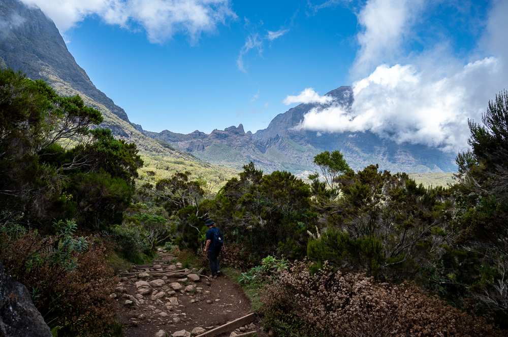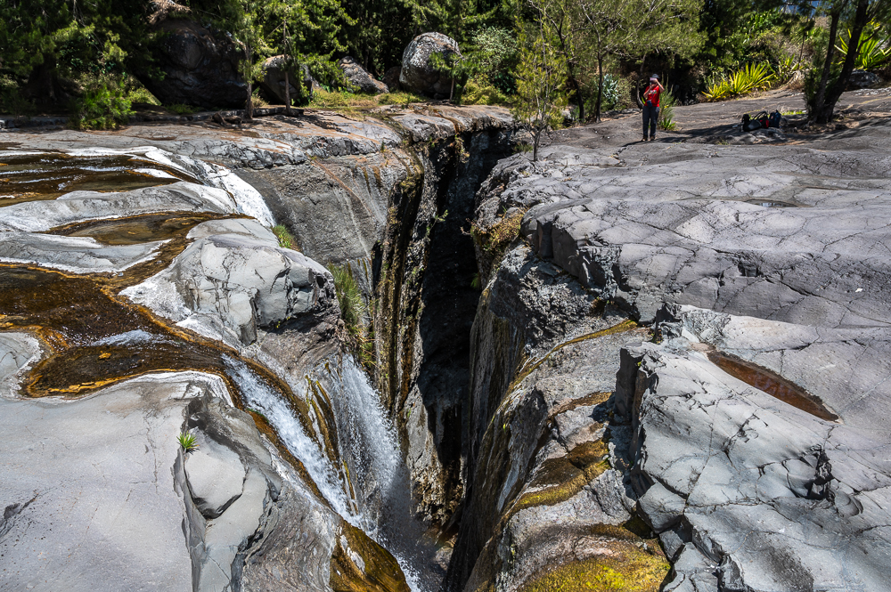 Am nächsten Tag wandern wir im grünen bergigen Herzen des Talkessels zum Trois Roches Wasserfall und danach weiter bis nach Marla.