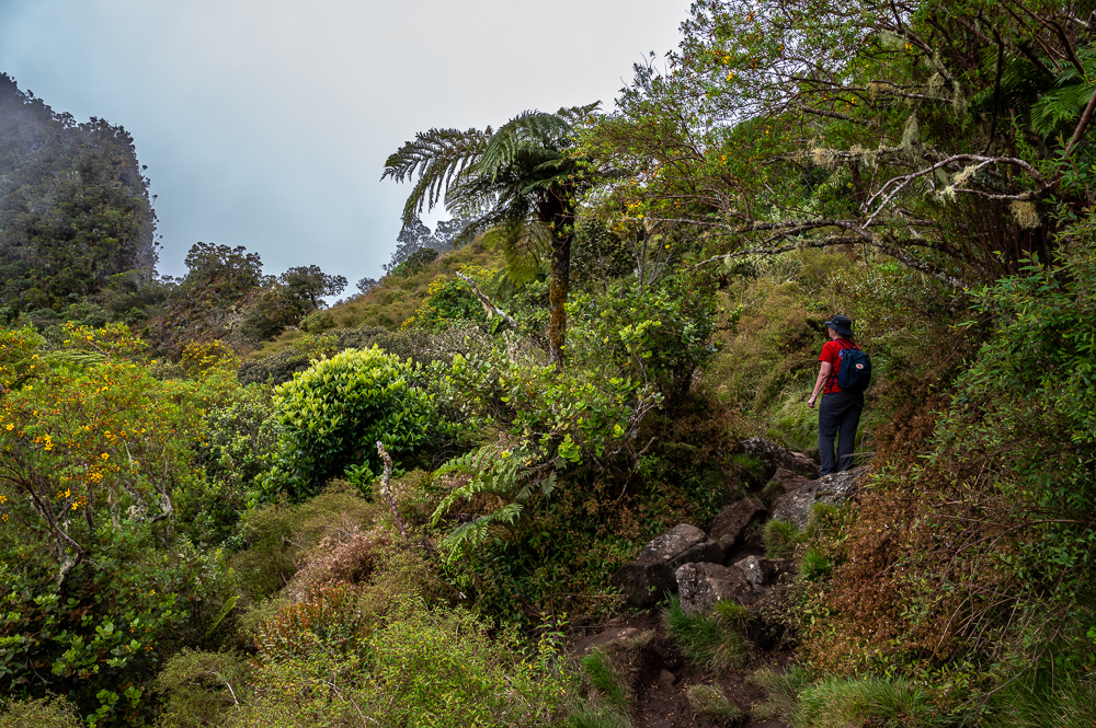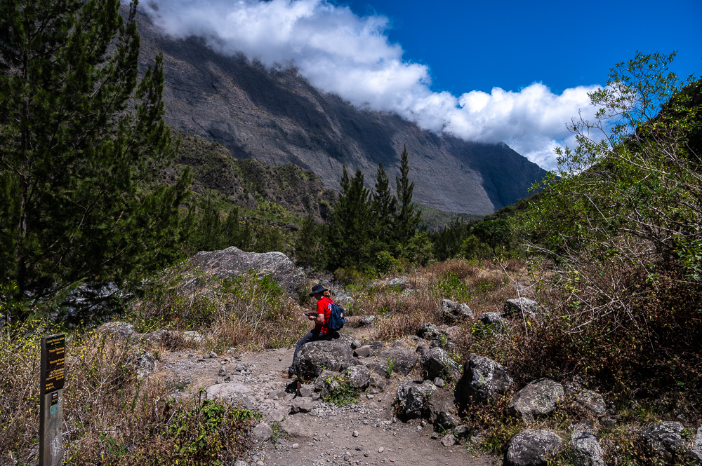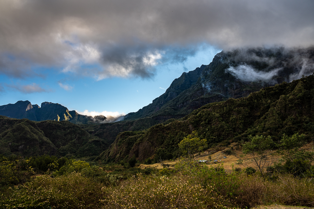 Der Startpunkt für unsere 3-tägige Wanderung im Cirque de Mafate ist der Pass Col des Boeufs (1958 m). Hier lassen wir das Auto auf dem bewachten Parkplatz stehen und geht zu Fuß weiter. Das heutiges Ziel, La Nouvelle (150 Einw.) erreichen wir nach ca. 3 bis 4 Stunden Wanderung.